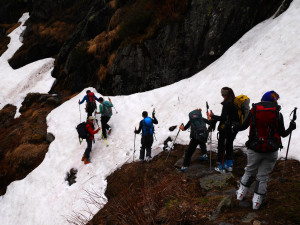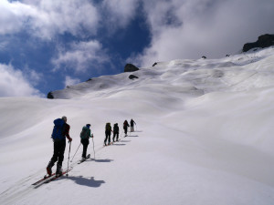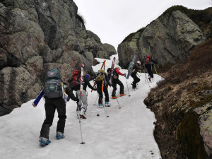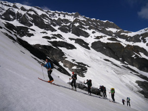 The idea of this long week-end was to combine climbing and a ski-tour. In May the weather is warm and sunny, making it possible to climb on quite a high altitude. At the same time there were still enough snow to rich some nice climbing spots on ski.