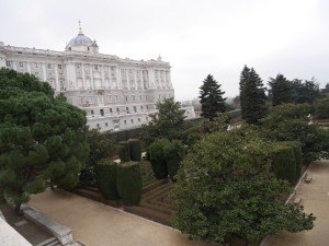 После Собора я вышла к Королевскому дворцу Palacio Real de Madrid, который еще называют Восточным дворцом Palacio de Oriente. Palacio Real de Madrid — это официальная резиденция королей Испании. Перед дворцом огромная Оружейная площадь. А за дворцом – красивый парк.