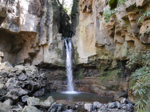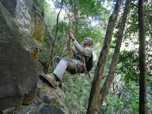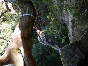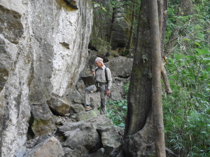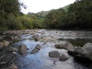 Мы пролазили у Дона Видаля 2 дня и решили на пути в Ареналь разведать еще один скальный сайт – Forum. Он находится практически в Сан Хосе. Как подходить к сайту подробно написано в гайдбуке. Машину можно оставить на парковке большого супермаркета. В супермаркете отличная столовая и можно поесть. В машине просят не оставлять ничего ценного. Чтобы попасть на сайт надо пройти под автомобильным мостом и затем еще примерно 200 м по тропинке до большого дерева (читай подробно гайд). С дерева можно спустить дюльфер и спуститься вниз каньона. Каньон очень красивый, даже не веришь что такое возможно на задворках Сан Хосе. В каньон падает 2х ступенчатый водопад. Маршруты сложные и не чищенные. Там же лежит набор “коста-риканского скалолаза” – 2 щетки и мачете. Каска обязательна – Федьке на голову прилетело большое бревно, хорошо что сухое. В общем побегали мы по дну каньона, наделали фоток, получили бревном по лбу и вылезли на поверхность. На этом исследования сектора Forum закончилось. Теперь наш путь лежал в Ареналь.