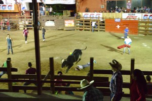 Во второй вечер хозяин нашего отеля нам посоветовал сходить на родео. Оказывается именно в этот вечер проводились родео соревнования местного масштаба в 3 мин от нашего отеля. В начале были соревнования ковбоев на лошадях – объезжали препятствия на скорость. В общем что-то типо слалома на лошадях. Затем дразнили бычков. Группа быстро бегающих юношей дразнила бычка и, когда бык кидался на них, запрыгивала на стены. Бычки реагировали по-разному. Кто-то бросался на дразнящих, а кто-то просто бегал вместе с людьми. Типо все бегают и я бегаю. При этом бычок периодами косился на дверь в загончик, не открыли ли?. В конце выезжали ковбои, закидывали на быка лассо и уводили его. Еще было настоящее родео – монтодоры пытались усидеть на брыкающихся быках. Нам понравилось.