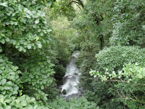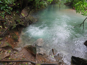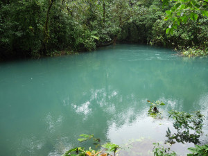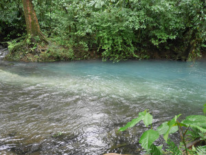 На следующий день мы отправились на Вулкан Тенорио – не активный вулкан, расположенный в Tenorio Volcano National Park. До парка можно доехать по дороге N143 до города Guatuso, затем 4 км по шоссе N4, и потом повернуть направо и следовать указателям. Вход в парк стоит 15$. Раньше в парке можно было искупаться в горячих источниках и сделать круговой трек в 11 км. Сейчас это все закрыто. Можно пройти только короткой тропинкой в 3 км и посмотреть голубую лагуну, бульки в речке и саму реку Селесте – Río Celeste. Los Teñidores – место , где воды двух рек смешиваются и образуют реку Селесте молочно-голубого цвета. Несмотря на неудавшееся купание, на которое мы так рассчитывали, нам очень понравилось в парке.