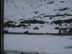 Hospice du Simplon находится на самом перевале Simplon pass. Хоспис – настоящий действующий с монахами. Но это не мешает им подавать вино к ужину :). Вообще Simplon pass – важно стратегическое место, там периодами проходят военные учения и стрельбы. Расписание и карта стрельб вывешивается на перевале на автобусной остановке и в хосписе. Причем, кто не знаком со Швейцарией, хочу предупредить – стреляют по честному, прям по скалам, так что лучше не шутить. Вечером как раз по перевалу танки ехали, к завтрашним стрельбам готовились.