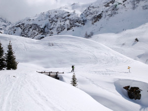 На поезде проехали через всю Швейцарию до Scuol. От поселка поднялись на нескольких подъемниках наверх горнолыжного курорта Motta Naluns. На последнем бугеле надо подняться на Champatsch. На старте бугеля есть будка с суровым дядькой. Дядьке надо сказать, что вы не кататься на курорте, а на скитур, тогда он отдаст 15 франков (из 30) обратно.