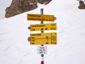 От Marjelensee (2302 m) начинается подъем до озера Vondensee и домика Gletscherstube Hütte (2373 m). На уровне этого домика находится вход в туннель, который важно не пропустить. По туннелю можно существенно сократить дорогу, т.к. не надо подниматься на перевал. В туннеле есть маленькая часовня. Туннель примерно 1 км длиной. Из него вы довольно быстро попадаете на горнолыжный курорт. На курорте надо обязательно дотраверсить до станции Fiescheralp (2212 m), откуда ходят кабинки вниз. Кабинки работают допоздна (последняя вроде в 18:30 уходит), даже когда остальные подъемники курорта уже закрылись. Мы, не доехав до Fiescheralp, увидели трассу, обрадовались и поехали по ней вниз. В результате оказались внизу кресельного подъемника Heimatt, откуда можно выбраться только через верх. Через верх не вышло, т.к. креселка была уже закрыта и нам оставалось только одно – продолжить спускаться вниз. На лыжах, пока снег не кончится, и потом пешком. Снег кончился примерно на 1300 m. И 250-300 m нам пришлось спускаться пешком до поселка Fiesch. Сначала по дороге, потом по огородам и частной собственности.
