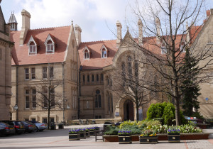 Раз изначально цель поездки была научная, то прежде всего об Университете, в котором была организована конференция мужа. Манчестерский Университет, The University of Manchester — один из наиболее крупных и известных британских университетов. Он входит в группу из шести знаменитых и престижных университетов Англии, Red Brick (Universities). Я была во многих университетах по всему миру, но University of Manchester – это что-то. Там какой-то особенный дух или стиль. Видишь эти стены и от них веет историей. Я с первого взгляда поняла, что вот тут хотела бы учиться. Университет организован как кампус, т.е. все здания университета, столовые, кафе, общежития, спортивная активность находятся в одном месте. Мой Женевский Университет, наоборот, разбросан по всему городу, что очень неудобно. Кроме того, Манчестерский Университет расположен всего в 10-20 мин пешком от центра города. Так что нет изолированности, присущей американским университетам. Очень много цветов и свежей весенней зелени. Ну и конечно этот самый red brick – красный кирпич, из которого построены здания Университета.