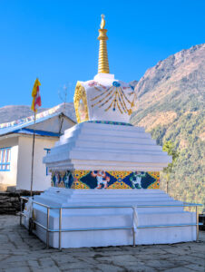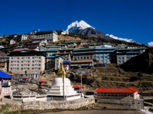 В Намче мы пришли к обеду. Много лоджей закрыто, поселок выглядит полуживым. Мы поселились в Хилл-Тен отеле. Он большой, пустой и холодный, но вид из окна потрясающий. Кроме нас там было ещё 2 треккера из Америки, которые шли в Гоккио. Ещё пару треккеров мы встретили в кафе Бариста. Больше народа нет. В удивительное время мы тут. Столица шерпов, трек к БЛ Эвереста и всего несколько групп.