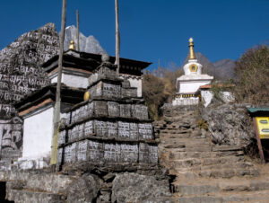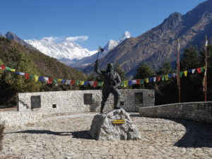 Феде лучше, но он не выздоровел до того, чтобы идти дальше. Так что сегодня он дома. Ему купили витамин С за аццкие деньги – 6$ за 10 таблеток, за закрепления выздоровления. А я пошла гулять к мемориалу Тензингу Норгей. Оттуда открывается шикарный вид на Эверест. Я была там совсем одна. Было ещё рано и я решила для акклиматизации подняться ещё раз наверх, только не к Эверест отелю, а к Everest Sherpa Resort (3840 м).