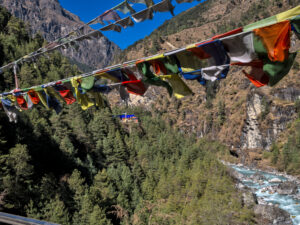 Наконец настало утро. Позавтракали в 7 и вышли в 8:30. За 4 часа 30 мин дошли до Намче Базара. В принципе шлось легко, даже с рюкзаками. 3 раза проверяли документы. После моста Хилари дорога резко идёт вверх. Тепло и солнечно.