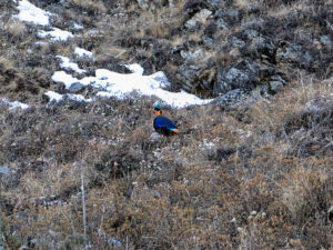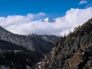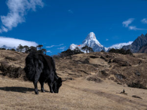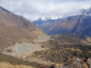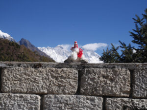 Сегодня у нас день отдыха в Дингбоче. После завтрака мы отправились на акклиматизационный выход на гору Nangkartshang (5073 м). На солнышке тепло и приятно, хотя уже не особо хочется снимать тёплую пуховку. Поднимались медленно и тяжело. Подъем (600 м) занял 2 с половиной часа с фото и чаем. Мохан увязался с нами. К 12 дня натянуло тучи и, когда мы спустились в лоджу, солнца уже не было. Начал падать снежок. Мы пообедали и в магазине купили сникерсов. Они тут очень хорошо идут. Я ухитрилась даже помыть голову.