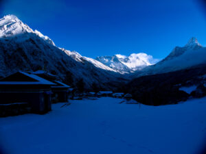 - Зимой в Непале может быть очень холодно. Не просто холодно, а оооочень холодно. Ночью может быть запросто – 30С на улице (что переносится нормально) и – 10С в лодже (что совсем не уютно). Нам конечно еще и “особо повезло” – зима настала практически на месяц раньше, даже непальцы удивлялись.