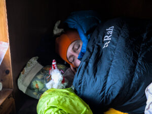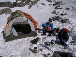 - Ночью опять же очень холодно. Из-за этого я бы не выходила на восхождение в темноте. На солнце шансы на удачное восхождение выше. Если есть опасения не спуститься засветло в посёлок, то можно запланировать заночевать в палатке после горы. Опять же, в палатке теплее, чем в лоджии. Надо просто взять лишнюю еду на 1 дополнительную ночь, что примерно 500 г на 2 человека.