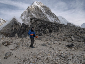 Сегодня в планах акклиматизационный выход на Kala Patthar (5648 м). На удивление спали сносно. К утру замерзло все, включая капли в нос и линзы. На верхнем одеяле лёг иней. Проснулись в 5:45 и вышли без завтрака в 6:20. Хотелось посмотреть красивые виды, а погоду обещали облачную. Но мы успели все пофоткать. На вершину зашли за 1 ч 40 мин. Было не просто, шли медленно, у меня болела голова. Зато вниз сбежали быстро к завтраку.
