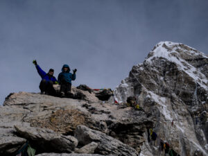 В палатке приготовили еду, чай, упаковали все вещи и собрались ждать Анупа, который обещал прийти за нами к 11 часам. Часам к 9 ветер усилился, а в 10 начался обещанный ураган. Холодный ветер около 100 км/ч со снегом. Мы пережидали в палатке. Ануп нас не бросил и в 11:15 пришёл. Втроем мы собрали палатку и пошли вниз. Ветер в прямом смысле сбивает с ног. Что сейчас на вершине, даже страшно подумать. Внизу полегчало и часам к 4 мы пришли в Дингбоче.