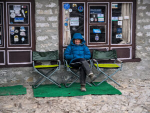 Позавтракали. В нашей комнате дубак. Поглазели на англичанина, который улетал на вертолёте. Мы несколько раз пересекались с ним на треке, после трека он решил лететь в Луклу на вертолёте. Я ему почти завидую.