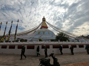 Сегодня отправились смотреть ступу Боднатх (Bouddhanath Temple). Поехали на такси. Сторговались за 1000 рупий туда-обратно. Вход стоит 250 рупий с человека, но мы следуя инструкции интернета прошли бесплатно. Красиво, много сувенирные лавок, торговцы так же пристают, но все на много приличнее и чище, чем на площади Дурбар. Много кафешек на крыше с видом на ступу. Попили кофе, купили сувениров, пообедали во вьетнамском ресторане.