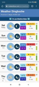 Проспали до 9 утра, те 12 часов. Спать мы тут научились. Небо затянуто, но пробивается солнышко и нагревает постепенно наш замерзший мир. Нам бы надо было бы просушить наше барахлишко. Ждём завтрака и смотрим погоду. Снега не обещают, но обещают сильный ветер и особенно 3 января, те в день, когда мы планируем идти на гору. Ну и особенно холодную ночь – 30С. Мохан больной, но вроде обещал найти нам портеров до базового лагеря. Ох, все это какой-то не добавляет мотивации.