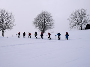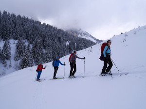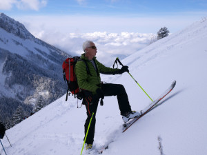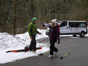 There are two main ways to Pointe de Sur Cou, from Orange and from Beffay. We went to Pointe de Sur Cou: Versant NE, depuis le Beffay. First 200 m we had to go by foot, but later the snow coverage became not bad.