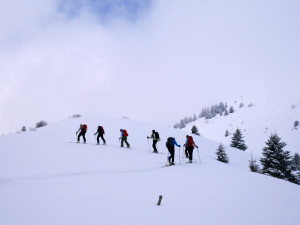 Today we went to Pointe de Sur Cou (1809 m) in the massif Bornes – Aravis. Actually it was a course for beginners organized by UniGe. I am not a beginner but since I did not have company it was a chance for me to go to the mountains. Moreover the course was guided by Michel Piola and it is always a pleasure to go with him.