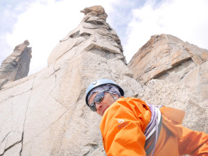 Когда мы прошли легкие скалы и вышли к самому Зубу, стало совсем холодно и ветрено. Я сначала думала лезть в скальных тапочках, но сейчас об этом не было и речи. Я напялила на себя всю одежду, которая была – подштанники, пуховку, виндстоппер, мембранную куртку, шапку и тд. Ну и, естественно, ботинки, какие уж тут скальные тапочки. Когда так холодно, то и ботинки сойдут за скальники.