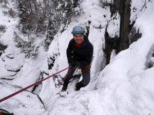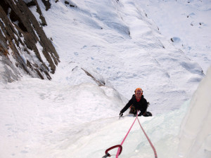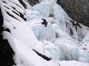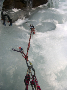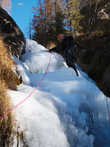 The day after the snowfall. We decided to climb something not exposed to avalanches – Cascade de Lillaz. Now the 1st pitch was formed. The second step is still a nice waterfall.
