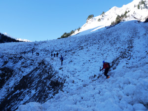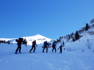 We started at the Parking Vallon, la Lanche (Le Reposoir) – 1070 m. Sunny day with a lot of avalanche traces. Great precipitation last week cause a lot of avalanches. We traversed 2 really big ones. I 1st time tried my clever pulse Violetrunner at ski-tour. Wow! May be it is not correct, but I spent 1600 kcal for this easy ski-tour.  I was surprised! You want to loos weight – do ski-touring!