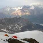 - View on the Camp 3 from the Razdelnaya Peak (6148 m)