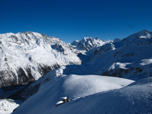На следующий день вышли не рано. Пересекли ледник Glacier des Aiguilles Rouges. Доминик немного изменил классический маршрут. Мы прошли через вершинку Pointe de Darbonneire – 3422 m, спустились на ледник Glacier de Vouasson. Пересекли его и поднялись на нашу вершинку, Pointe de Vouasson. Очень порадовала погода – тихо, солнечно, безветренно. Шикарные виды с вершины.