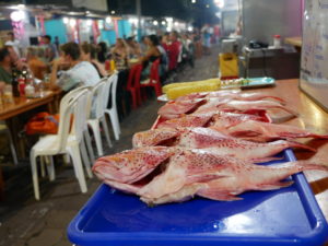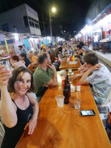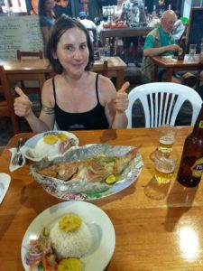 Ужин, ах ужин, на ужин у нас была шикарная огромная только что пойманная рыба на гриле с рисом и овощами. 20$ всего на 2х. Как найти – пройти мимо всех крутых ресторанов на набережной и идти внутрь города. Там мелкие ресторанчик вечером выставляют столы в центре улицы и идёт пир. Вкусно до невозможности.