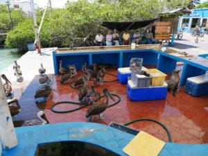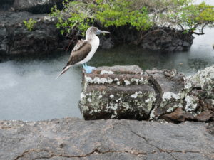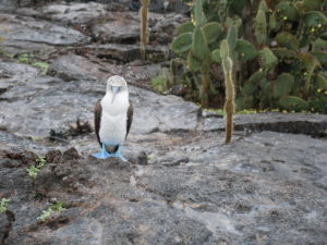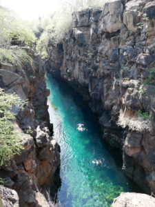 Los Tuneles – это тоннелеобразные образования, которые возникли в результате извержения вулкана Sierra Negra. Мы до них плыли минут 40 на маленькой скоростной лодке. Ключевая часть программы, это, конечно снорклинг. Мы снорклили в 2х разных местах. Оба раза с гидом. Гид – очень важная составляющая. Он знаем все места, где могут прятаться животные. Наш даже помогал девочкам заныривать вниз, пихая в спину. Мне было важно, я нырять не умею. Какой это был снорклинг!!!!! Мы видели морских коньков, разных рыб, лангустов, осьминогов. Плавали вместе с акулами и огромными морскими черепахами. В общем нереально! После 2х довольно долгих заплывов нам дали обед – горячий рис с креветками. Вторая часть программы была сухопутная, если так можно выразиться, потому что у нас лил дождь. Мы пошли гулять по поверхности Los Tuneles. Видели совсем близко потрясающих птиц с голубыми лапами – Голубоногих олушей (Sula nebouxii). Потом дорога обратно, на Isabela Island.
