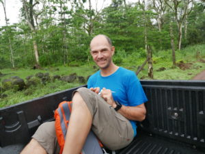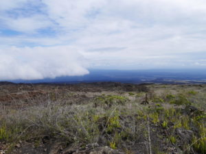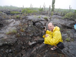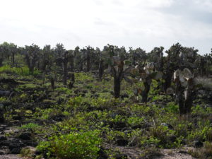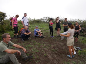 Дождь лил всю ночь. Но на утро удивительным образом прекратился. Нас забрала машина из агентства и мы поехали на вулкан. Ехать минут 40 в глубь острова. Самим гулять там запрещено, только с гидом и только по строго отведенной дорожке. Вулкан Sierra Negra извергался в предпоследний раз в 2005 а в последний – в 2018 году летом. После извержения в 2018 году вулкан был закрыт для посещения и экскурсии разрешили только 2 месяца назад. Так что нам в каком-то смысле повезло. Трек примерно 8 км в одну сторону. Сначала подъем до вида на кальдеру Sierra Negra (1124 m). К слову сказать, эта кальдера вторая по величине в мире и имеет размер 7.2 x 9.3 km. Потом спуск на другую сторону кальдеры к Volcan Chico. Видели свежие потоки застывшей лавы, после 2х последних извержение. Пейзаж космический. Вид на весь остров, можно даже увидеть северный конец и вулкан Вольф – самый высокий на Галапагосах. Забавно, как меняется погода – к югу от Sierra Negra пасмурно, как только переваливаешь верхнюю точку – солнце и ясно. На обратном пути попали под дождь. Потом опять под солнце. Вот такая погода – экватор.