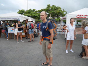 Мы летели с остановкой в Гуаякиле, но из самолёта не выходили. Когда прилетели, ещё заплатили 100$ налога. Собачки проверили наш багаж. Дальше – сплошная трата денег конвеером. С человека 5$ за автобус по Бальтре до парома, 1$ за паром, 5$ за автобус по Санта Круз до Пуэрто Айора.