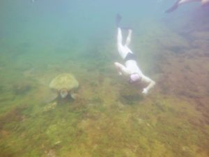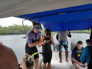 На Галапагосах очень интересно снорклить и дайвить. Приехав туда можно купить пэкидж – проживание и дайвинг на разное время, обычно 2-8 дней. Это довольно выгодно, вам обеспечивают лодку, завтрак и ланч, и гида. Гид очень выгоден, он знает, где кто живёт, где он прячется и как его найти.
