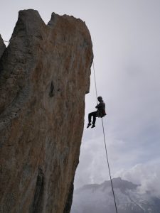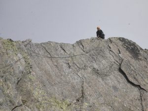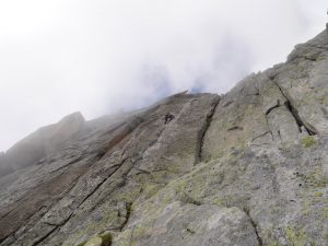 Выбрали лезть на Salbitschijen (2981 m) по длинному, но простому маршруту – R1 South Ridge, D+ 5с+. Подход к маршруту от хижины занял у нас 1ч 15 мин. Народ был, но разумное количество – все-таки понедельник. Маршрут хоть и не сложный, на первый взгляд, но категорию D, получил не зря. У нас получилось 25 веревок, так как мы пролезли нижнюю часть от маршрута Takala. Возможно часть веревок можно объединить, но мы упирались в связку перед нами. Лезли они медленнее нас, но мы были не настолько быстрыми, чтобы их легко обойти, а мешать им не хотелось. Лезли 10 часов, погода – прекрасная. Спуск довольно очевидный, снега на спуске почти не было – пару небольших снежников. В топо было написано, что на спуске 15 м дюльфера, но мы спустились так. Весь спуск у нас занял примерно 1 ч 30 мин. Пришли как раз к ужину.
