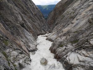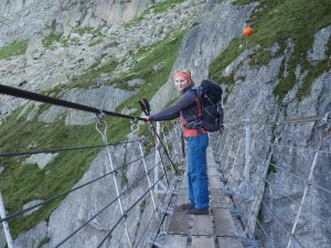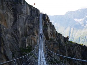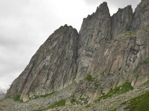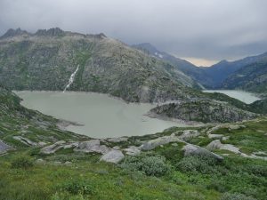Погоду обещали среднюю. У нас был шанс успеть пролезть часть маршрута R2 East Ridge на Salbitschijen. В общем маршрут мы не нашли. Обегали все и не нашли. Решили, что и ладно, в другой раз. Зато прошлись по длинному подвесному мосту. Только успели спуститься к машине, искупаться в речке и купить продуктов, как пошел дождь с градом. Мы переехали на Grimselpass, так как запланировали пролезть красивый гранитный маршрут Motörhead – Eldorado. Для ночевки выбрали ответвление дороги, сразу перед дамбой, которая ведет к хоспису. Там уже приютилась машинка австрийской парочки скалолазов. Вечером ужинали в машине, спасаясь от дождя. Гримзель пасс – настоящая военная точка – все как полагается в Швейцарии.