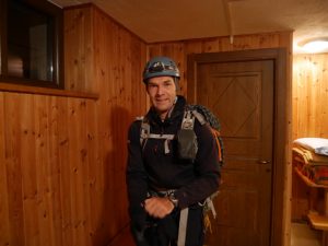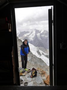 Rothornhütte мне всегда нравилась, маленькая, приятная, в старом альпийском стиле. Правда в этот раз какие-то идиоты утром орали и мешали спать. Вышли со всеми часов в 4-5 утра. Все идут на Зиналротхорн. Мы – на Schalihorn. Легко и быстро дошли до перевала Oberes Äschjoch. Оттуда по скалам поднялись до вершины Oberes Äschhorn. Надо идти по самому хребту там скалы лучше, и не пытаться пройти ниже. Спустились в большой снежный цирк Hohlichtgletscher. Пересекли его и начали подниматься на Schalihorn. В этот момент заметили, что за нам идет двойка. Откуда она взялась непонятно. Но явно не из хижины, слишком сильный отрыв от нас. Ну мало ли людей в Альпах шляется, хотя эти места уже не самые популярные. Мы поднимались на Schalihorn довольно медленно. Снег не замерзший и его много, местами до середины икры и выше. Тропить тяжело. Двойка постепенно нас догоняла. Реально быстрые ребята. К вершине они нас догнали. Это были гид с клиентом, которых вертолет забросил на перевал Oberes Äschjoch. Позже оказалось, что гид – это один из братьев Антаматтен, а именно Сэм. Они нас обогнали и пошли по хребту. Ну, мы за ними. Приятно быть не в одиночестве на таком маршруте. Маршрут L’arête Schalihorn-Schalijoch не простой и довольно длинный, короче вполне взрослая AD. Скалы хорошие. Мы уже порядком подустали. К биваку пришли на час-полтора позже ребят. Бивак очень уютный, но всего на 8 лежачих мест, 4 наверху и 4 внизу, так что могут быть проблемы, если придет несколько групп. Ребята заняли нижний ярус, а мы комфортно расположились на втором этаже. В биваке есть газ и даже тапки-кроки.