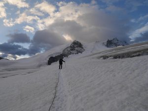 Weisshorn с севера. Неудача с Вайсхорном с запада нас не остановила. Сил было полно, энтузиазма тоже через край. Решили попробовать зайти на гору с севера по марштуту Weisshorn : Schaligrat (arête SW). Это сложный и долгий маршрут, категории Д. Маршрут идет из бивака Schalijoch biwak. Подход к началу маршрута – это отдельное приключение – долгий траверс L’arête Schalihorn-Schalijoch категории АД на 8-10 часов. Идея была из Церматта зайти в Rothornhütte, переночевать. Оттуда поднятся на Schalihorn , пройти L’arête Schalihorn-Schalijoch и заночевать в Биваке Schalijoch biwak. И оттуда уже по северному хребту подняться на Weisshorn. Спуститься по самому простому восточному хребту в Weisshornhütte, и затем в Ранду.