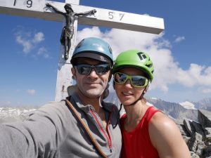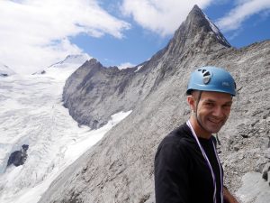 Встали в 6 утра, позавтракали и пошли к маршруту. Мы выбрали классический маршрут на Wiwannihorn (3001m) – Steinadlerroute 5a. На 430м. Под маршрут подошли в 8 часов. Перед нами уже лезли 3 связки, мы их постепенно обогнали и в 11 ч были на вершине. Маршрут простой и приятный, очень хорошо пробит. Это был хороший вариант для меня полидировать, тк обычно на скалах первым лезет Федя. Вторую половину мы пробежали с одновременной страховкой. Спустились к палатке к 12 дня. Целый день отдыхали и загорали.