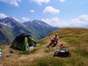 На ночевку встали в 10 км от Гриндельвальда. Опять шикарный ужин с вином, сыром и равиоли с грюерским сыром! А, ну и гроза , конечно! Как же без нее. Вообще погода устойчивая пока – днем жара, вечером – гроза. Предсказуемо.