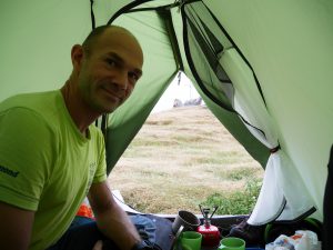 В 8 вечера, как и обещали, пошел дождь. Строго по расписанию. Сначала мелкий, с небольшими перерывами, потом покрупнее. Ужинали в палатке – тепло, сухо и уютно. В 9 вечера уже влило конкретно. С жуткой грозой. Молнии сверкали совсем рядом. Я подумала, что неплохо что у нас в 30 м от палатки стоит металлический крест – если фиганет, то в него, а не в палатку. Хотя и так приятного мало. Но ничего, как-то пронесло стороной, хоть и совсем рядом. Наша маленькая палатка отлично выдержала бурю – внутри все было совершенно сухо.