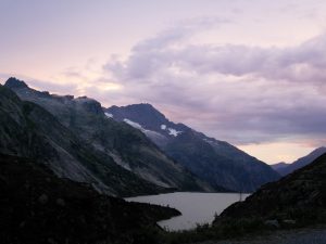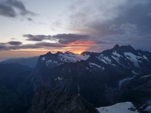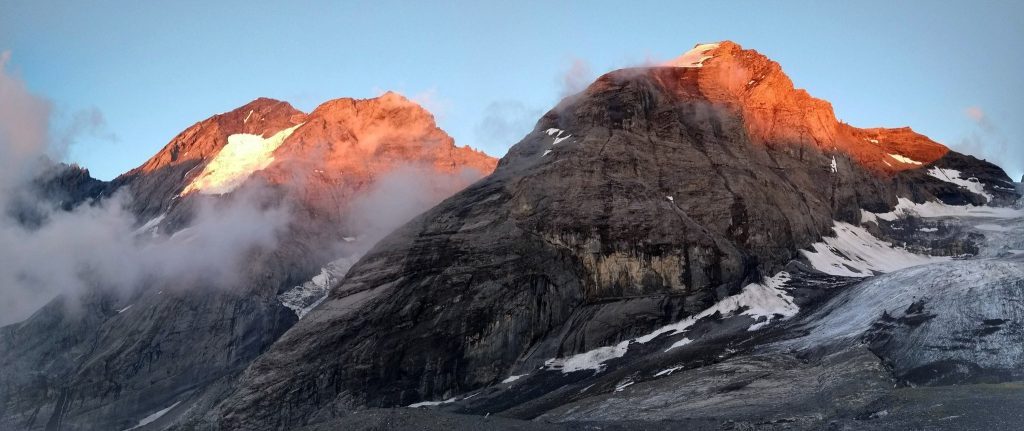 Встали в 3:30, вышли в 4:30 (тормоза!). Traverse of Oeschinenhorn and Blüemlisalphorn 3657m (AD) – довольно долгий маршрут. Мы прикидывали часов на 12 от Fründenhornhütte до Blüemlisalphütte и еще на спуск в поселок часа 3.