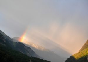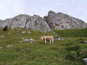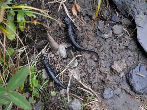 Сегодня обещали тучи и дождь во второй половине дня. Мы решили рискнуть, и пролезть что-то скальное и не длинное. А именно маршрут в Ueschenen, который называется Baumroute. Дорога до Ueschenen платная, стоит 10 франков. Маршрут нашли не сразу. Потеряли часа полтора. Небо уже затянуло, но мы решили, что если очень быстро полезем, то успеем. Не успели. Нас залило на 4й веревке. Вообще с количеством веревок и оттяжек как-то непонятно. Видно, что маршрут перепробивали. Оттяжек надо явно больше, чем написано в топо. Вокруг полно каких-то еще маршрутов, которые не указаны в нашей книжке, а так же всяких человеческих следов – старые карабины, дюльферные петли и тд. Явно народ пытался найти пути отступления. Мы сдюльферяли, мокрые и замерзшие. Пока дошли до машины дождь кончился. Видели по дороге 2 х саламандр!!!! Я в первый раз в жизни их видела вживую. Сидим в кемпинге, сушимся. Федя еще и успевает как-то работать – по скайпу обсуждает статью, которую они должны подать к пятнице. К вечеру влило не по детски. Прям море воды течет по кемпингу. Даже страшно подумать что на верху в горах. А нам завтра забрасываться в хижину.