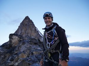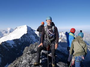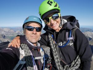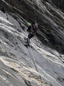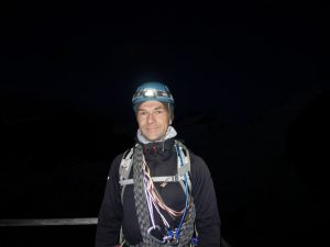 В Monchjochhütte было тепло и тихо. Время отдыха и кайфа после сложного дня. На маршруте познакомились с гидом Гришей. Он француз из Шамони с русскими корнями. Родился в Париже, дед – из России. Мы большую часть спуска шли за ним и помогали ему дюльферять. У него веревка была 30 м и прусик для сдергивания – не самы быстрый вариант, зато легкий по весу. Мы делали так – Гриша прикрепляет веревку восьмеркой к нашему карабину и дюльферяет по 1 веревке на свои 30 м. А я потом просто снимаю его веревку. Так существенно быстрее, даже если веревка длинная, как у нас (50м) – не надо ее протаскивать сквозь кольцо. В самом конце маршрута мы Гришу как-то обогнали, правда не поняли как. В хижине он нас угостил пивом за помощь.