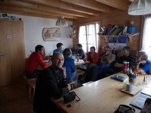 В Fründenhornhütte (2562 м) мы пришли как раз к ужину. Покормили очень хорошо! Народу было немного и по большей части треккеры, а не альпинисты. Было всего 2 группы альпинистов. Одна шла на Doldenhorn по восточному хребту (маршрут категории TD, на 8-10 часов). Другая – траверс Oeschinenhorn-Bluemlisalp.