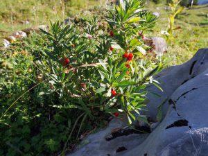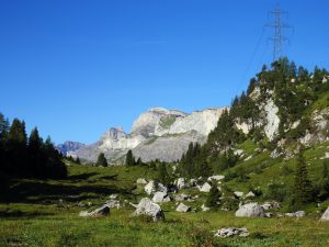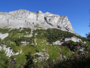Жара несусветная, выехали поздно. Нам надо было начинать акклиматизироваться. Мы решили пожить на 2500 м и полалить в районе 3000 м. Выбор пал на скалолазные районы в Wiwannihütte. Пока добрались до Ausserberg (1008м) пошел дождик и приятно освежил. От самого паселка до хижины идти долго, часа 4, не меньше. Но можно подняться на машине выше по лесной дороге и запарковаться там (1850м). Выигрыш 850м! Парковка наверху платная, стоит 5 франков 1й день и 3 фр каждый последующий. Заплатить надо внизу в Ausserberg, либо на вокзале в Hotel Bahnhof либо на парковке в автомате. Важно! Оплату проверяют, так что не забываем. Поднялись к хижине Wiwannihütte (2471м) за 1ч15мин, тропа отличная и очень красивая.нашли хорошее место под палатку в 2х шагах от хижины, но нас не видно. В хижине есть вода, но лучшее ее не пить, она стекает со снежника и накапливается в большой луже наверху, там полно баранов и высота не та, чтобы рисковать подхватить какую-то инфекцию. Короче в данном случае воду лучше кипятить. В принципе хижина приятная, маленькая, максимум на 30 человек. Вокруг хижины мноожество разных скальных маршрутов. Но мы решили жить в палатке. Все-таки идти совсем мало, рюкзаки не тяжелые – кошек и прочего барахла нет, даже маршруты пробитые. Ну и денег сэкономить.