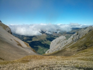 Мне очень хотелось сделать петлю побольше и спуститься с Tête de Paccaly в сторону Tardevant. А потом забежать на Ambrevetta. Но как я не искала, я так и не нашла спуска с Paccaly. На карте тропы нет, но у меня был трек, который я скачал с http://www.camptocamp.org/. В реальности оказалось, что там обледеневшие мокрые камни и трава. Никакого намека на тропку и довольно круто. Я спустилась метров 20-30. Лучше не стало. Стало только хуже и страшнее. В общем решине не рисковать и не шляться одна по скользким скалам. Ограничелась маленькой петлей и спуском с Сombe de Paccaly.